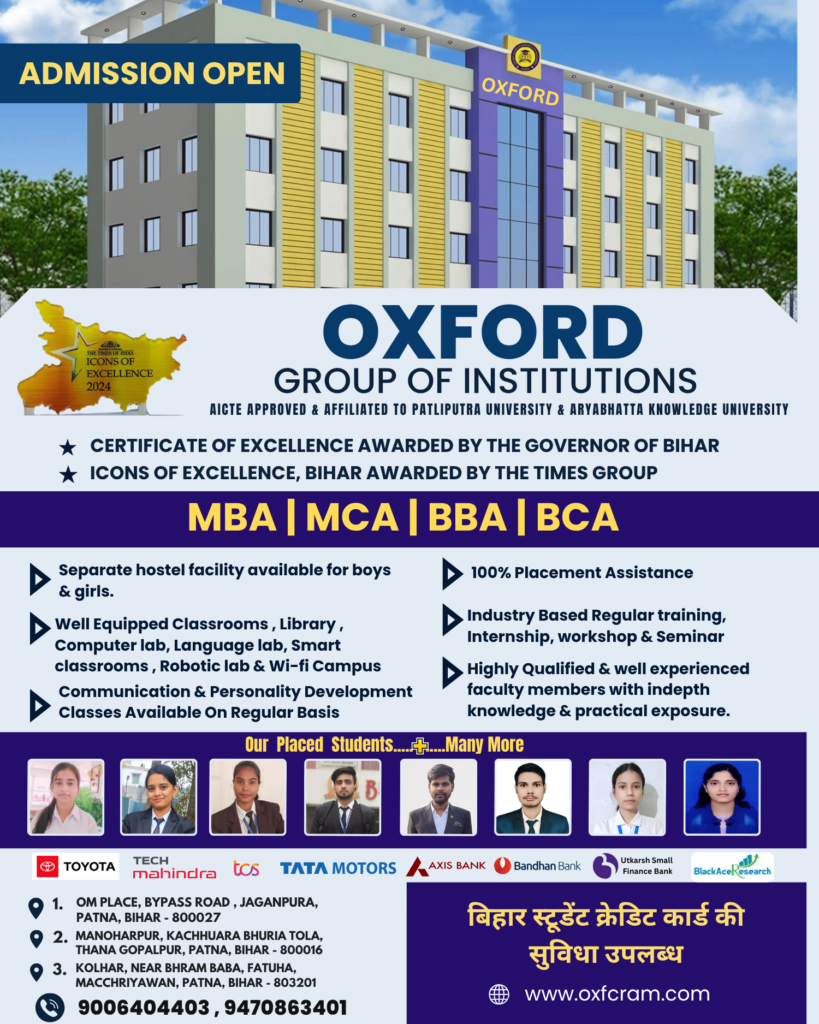 Apply now for MBA, MCA, BBA, or BCA programs at Oxford Business College, Patna.