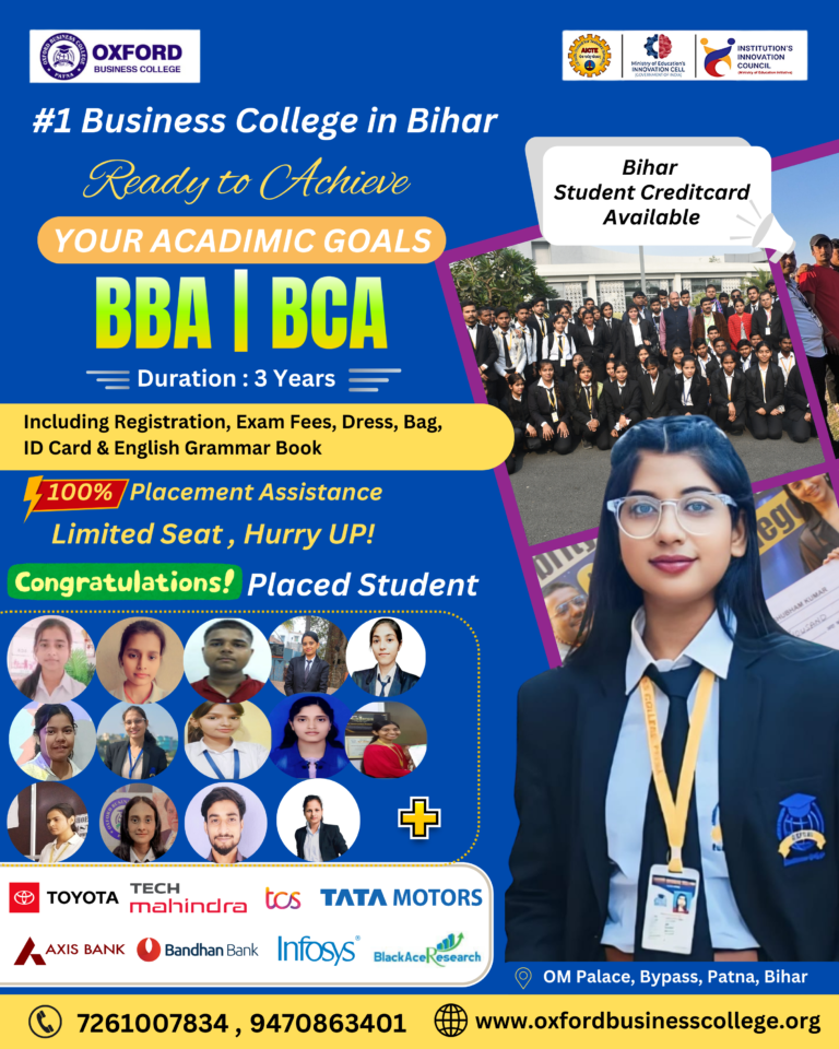 Oxford Business College offers BBA and BCA programs under Patliputra University, Patna.
